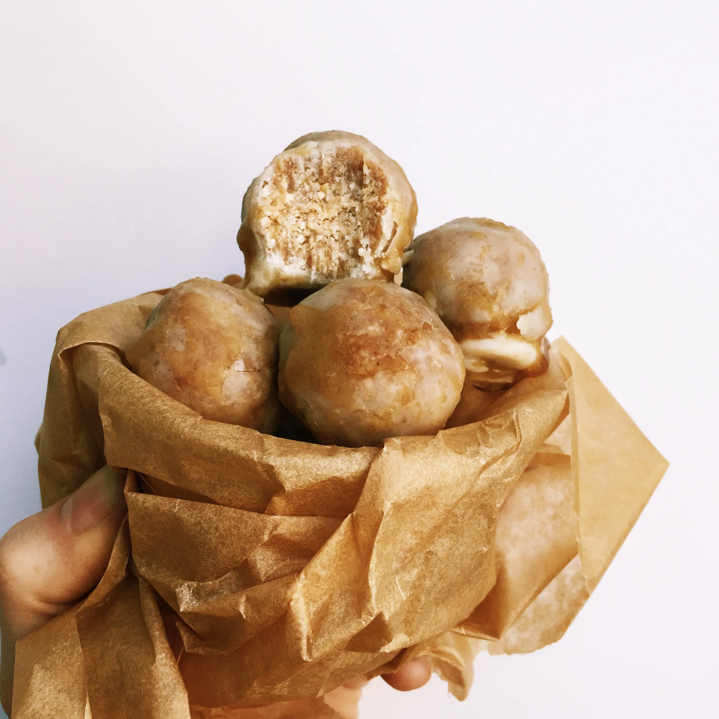 Roll each ball into the coconut oil and freeze again. Continue to coat donut balls and re freeze until a thick, gooey maple layer is achieved on each donut! Store in fridge and consume within 10 days.
